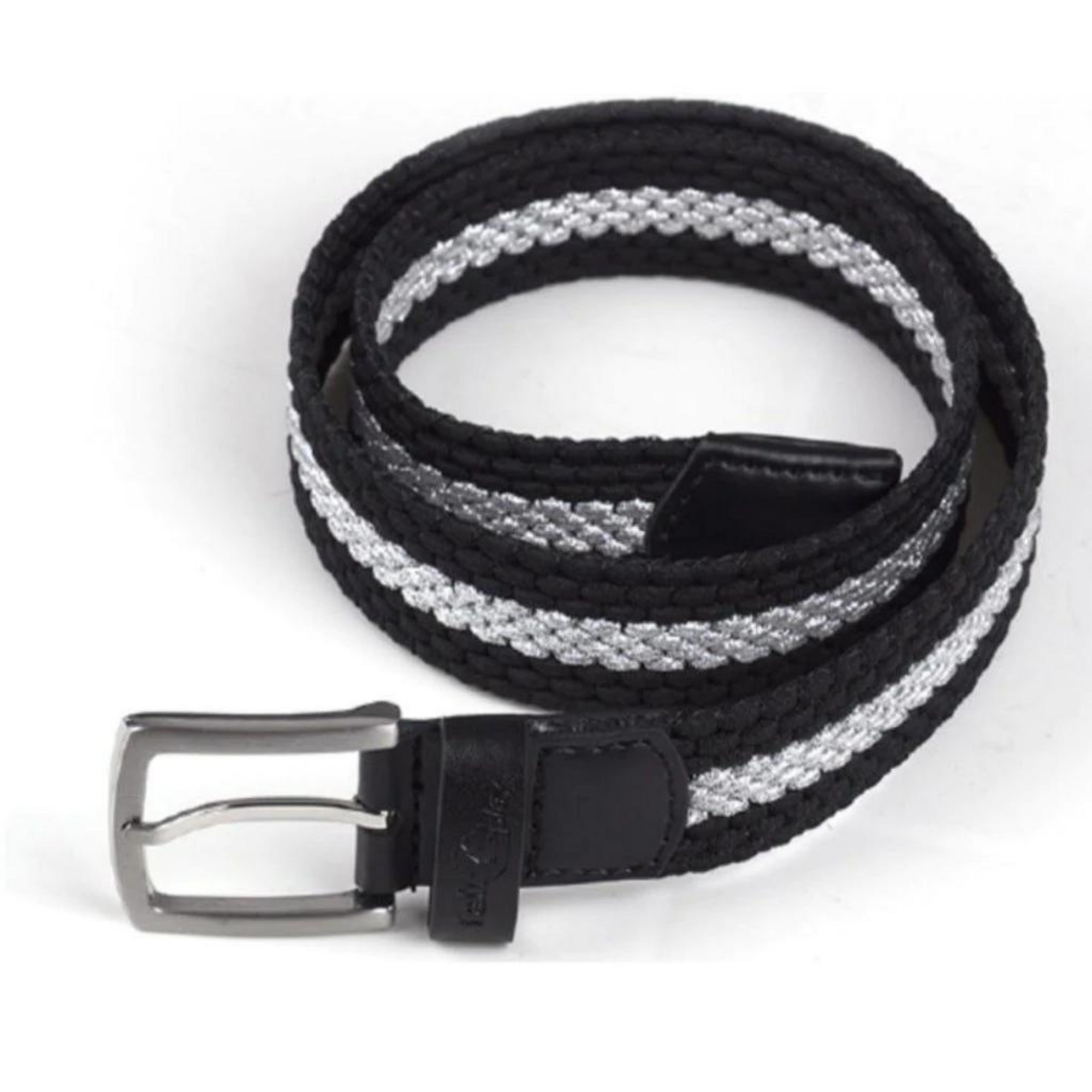 Fair Play's Hill Striped Belt is elastic, sporty and features a metallic silver stripe accent.