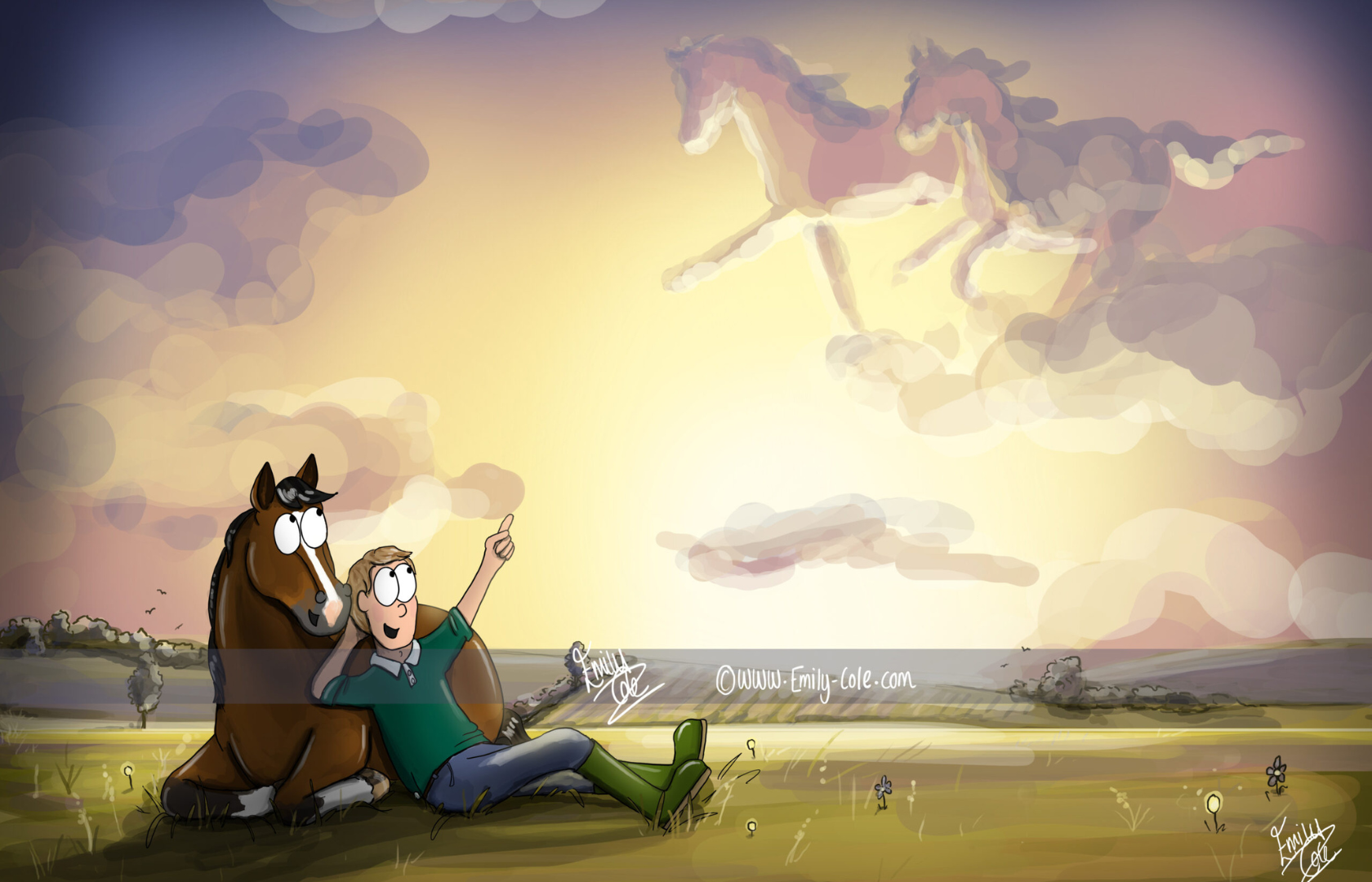 Emily is a Lincolnshire-based illustrator living with her husband, Ellie the Labrador, and Sid the Cat (who runs the show). Specializing in equestrian humor, she brings joy to riders through whimsical artwork featuring horses, dogs, and farm animals—because laughter belongs in the barn as much as the tack room.