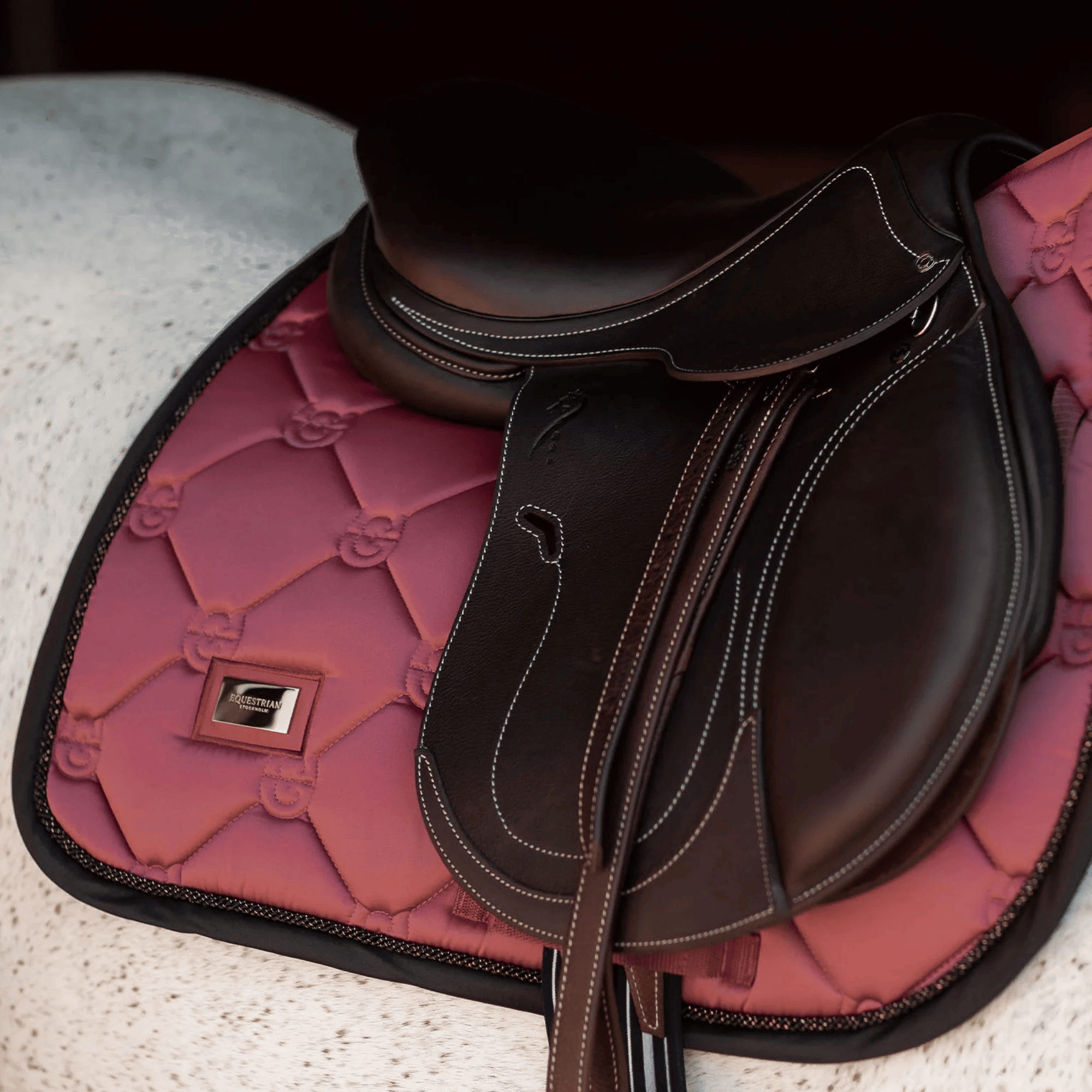 Elegant saddle pad in an soft rouge red color with black and rose gold details.