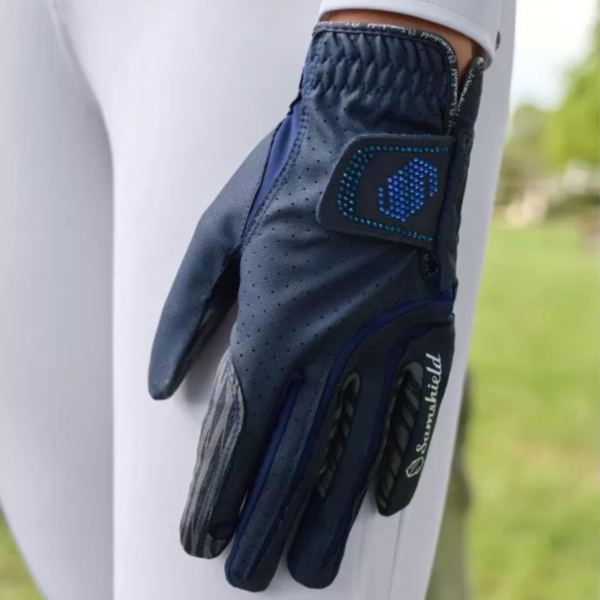 The V-Skin Swarovski gloves have the Samshield logo embellished in clear or rose gold Swarovski crystals.