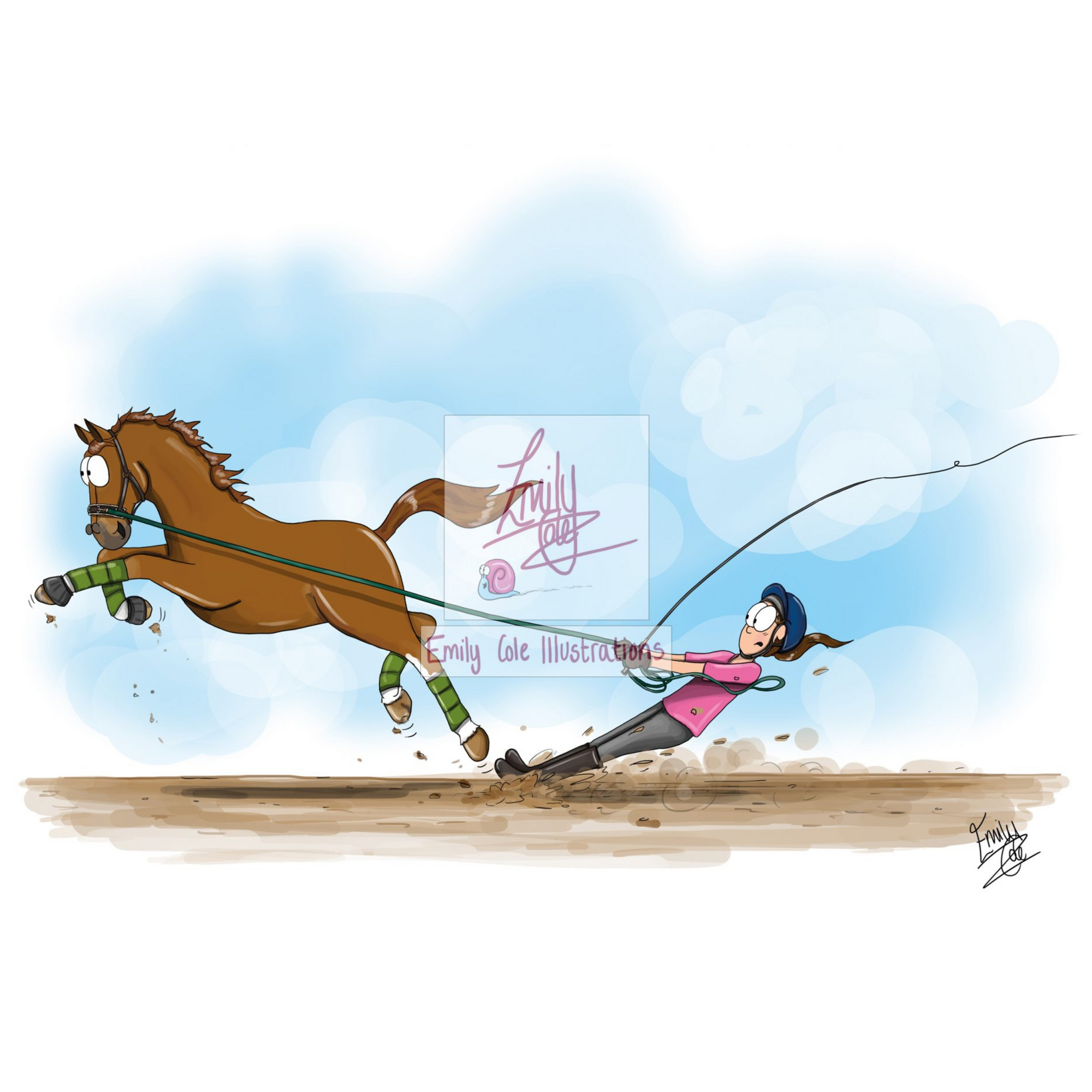 Emily Cole is a British illustrator known for her signature gangly Ponies with large cartoon eyes. As a student Emily was part of an Equestrian Society and whilst simultaneously trying to meet deadlines, she began to draw the members and various animals at the yard she trained at.