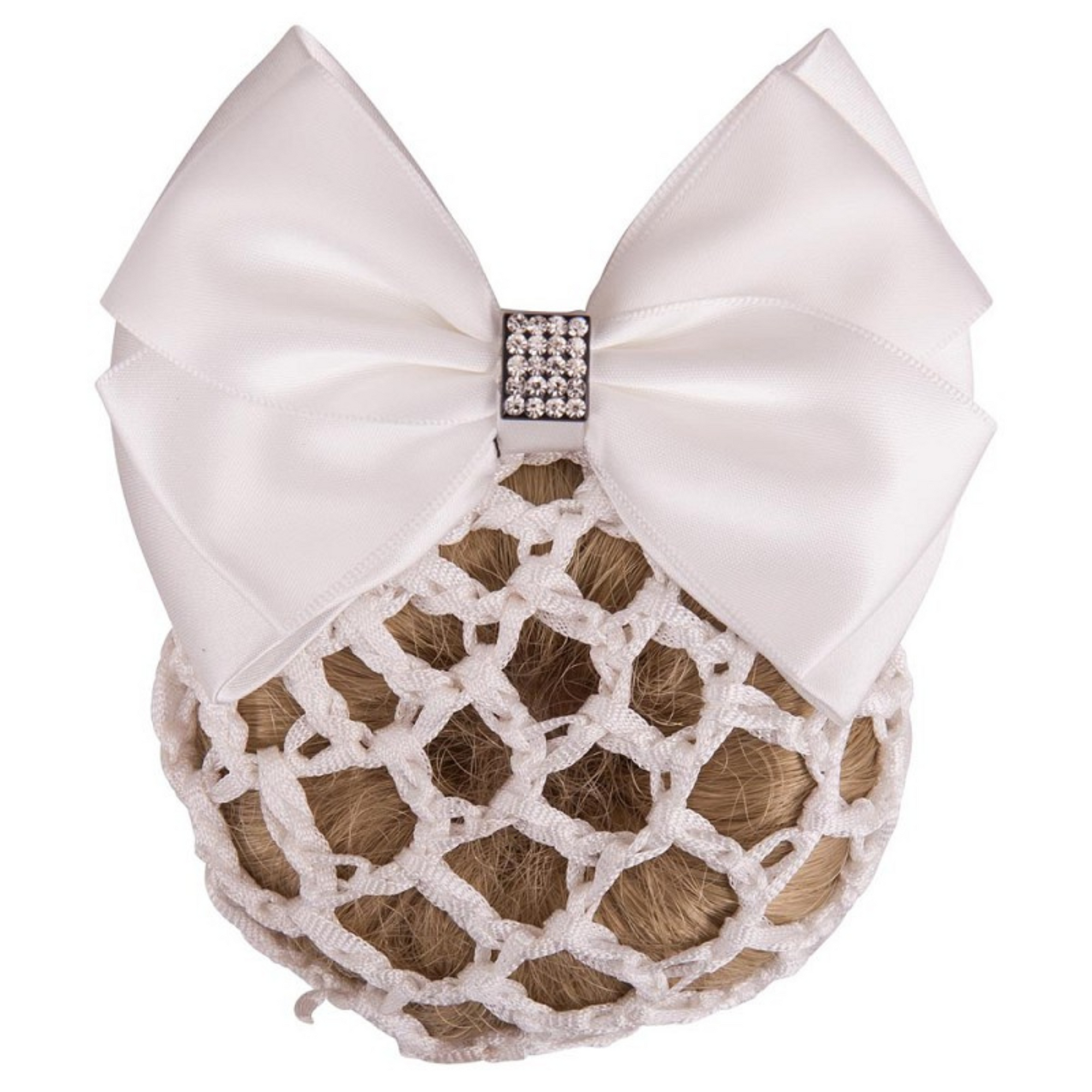 Features a hair bow embellished a square of imitation diamonds in the middle