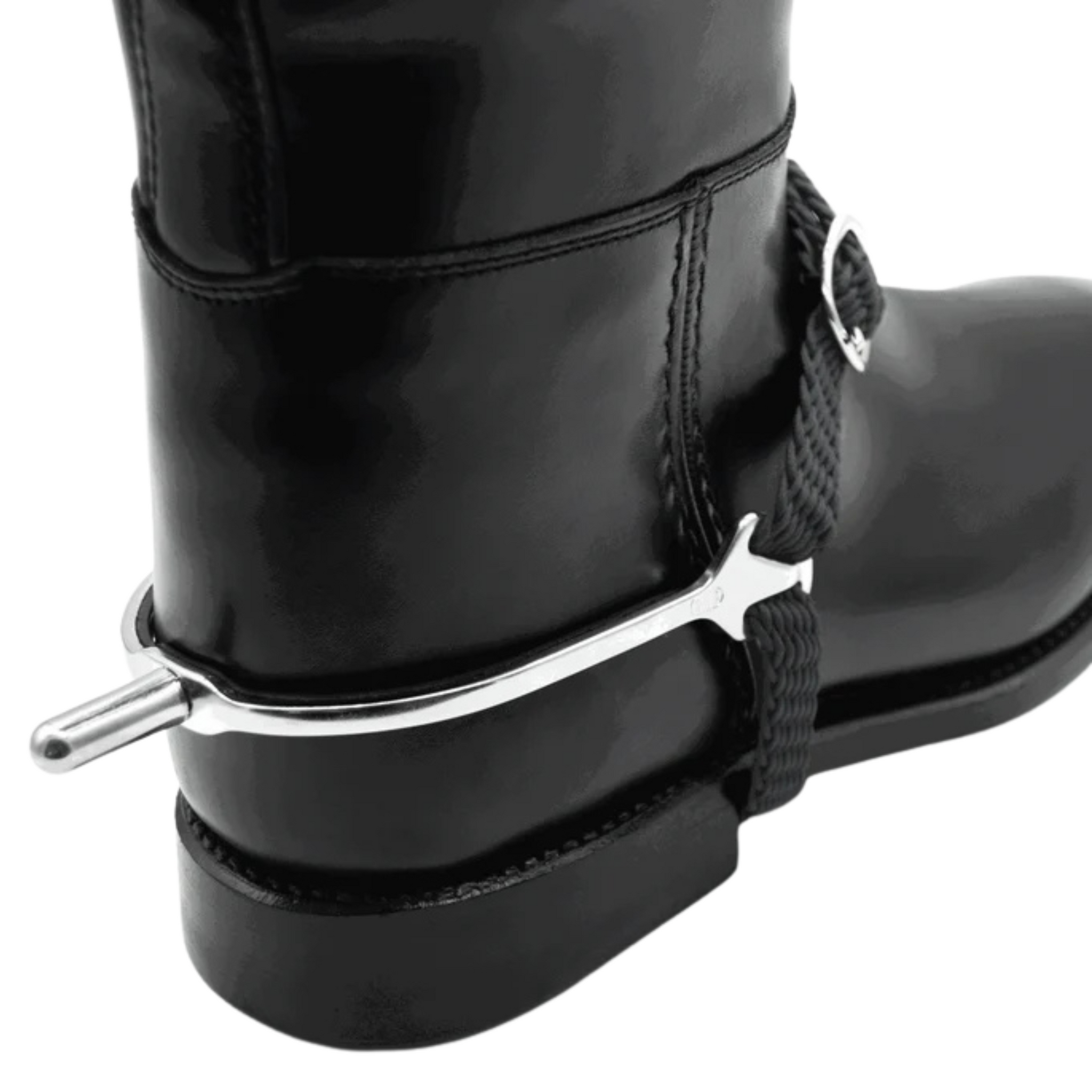 Rubber covering on the inside of the spur provides invisible no-slip grip and protects the leather of your boot