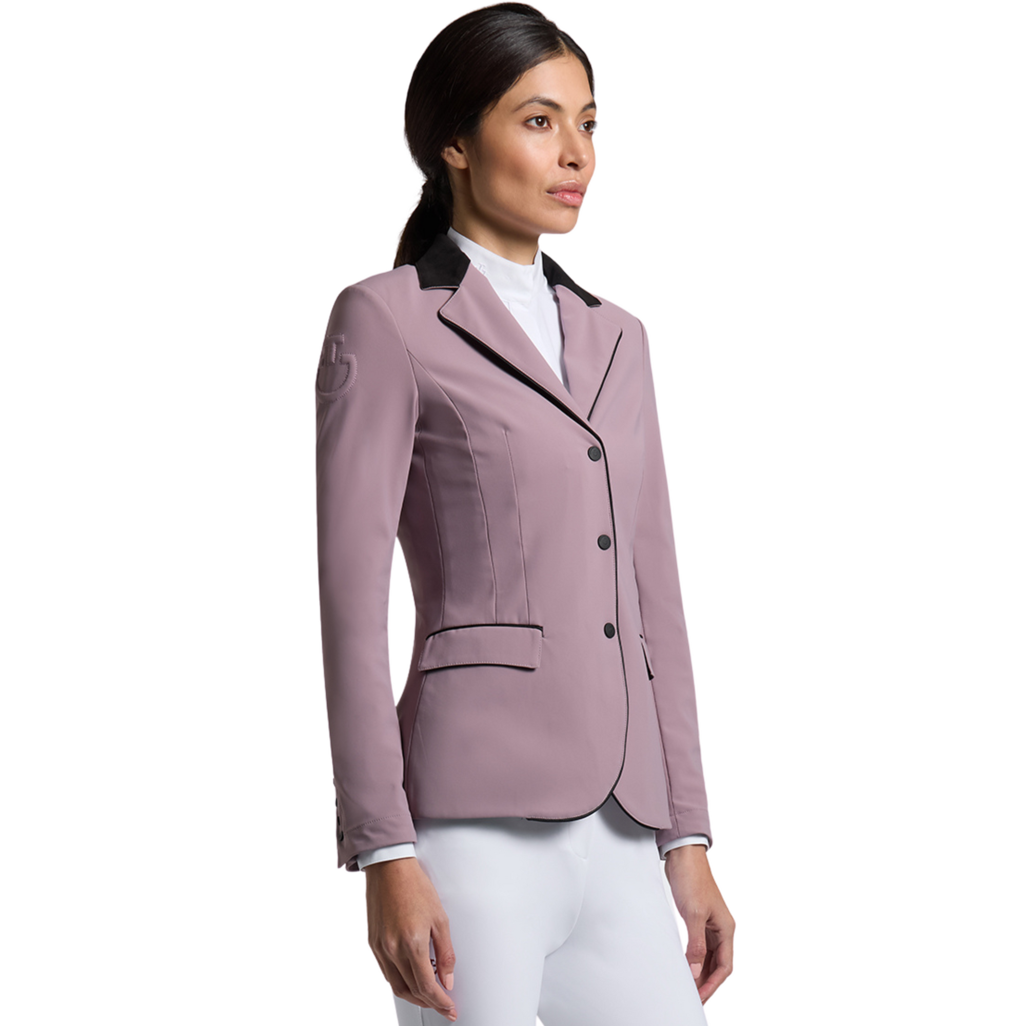 Women's competition jacket with alcantara collar, made from technical jersey.