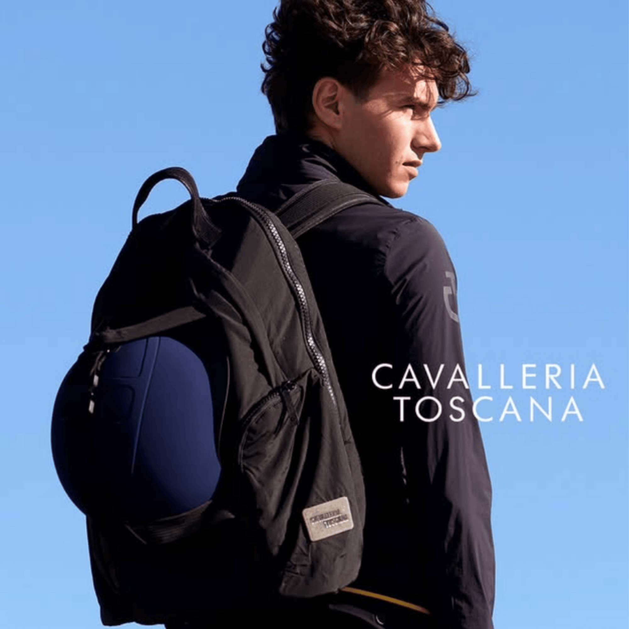 Multifunctional Cavalleria Toscana backpack with helmet holder compartment, crafted from durable materials with an elegant design for riders’ needs.