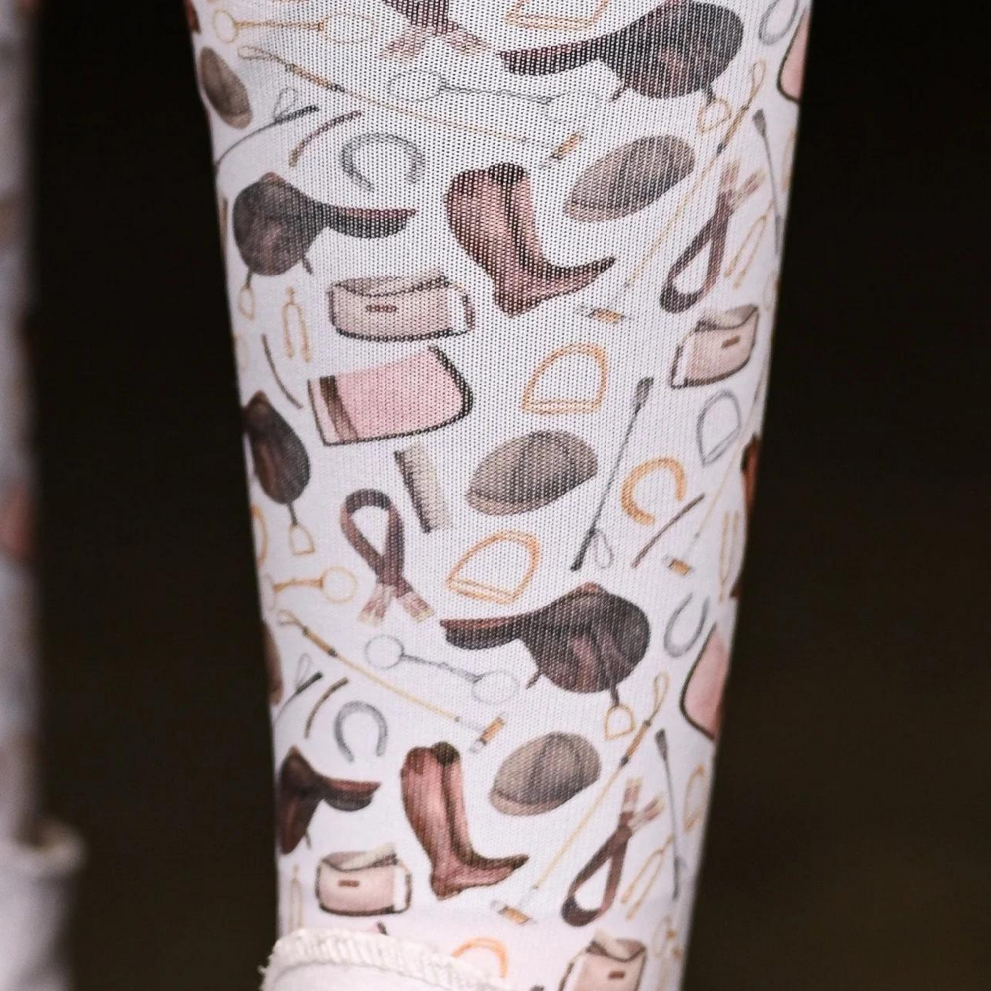 Our socks are super-soft to the touch with a thinly padded cotton terry footbed and our signature black bottom. We carried the padded footbed up the back of the socks to protect your heel from the bulk of your riding boot creases and spur strap placement. The cotton base wicks sweat, is breathable and long lasting. It is not too thick to change the shape of your boot, just enough to add some comfortable protection! #sayNOtoSweatySocks