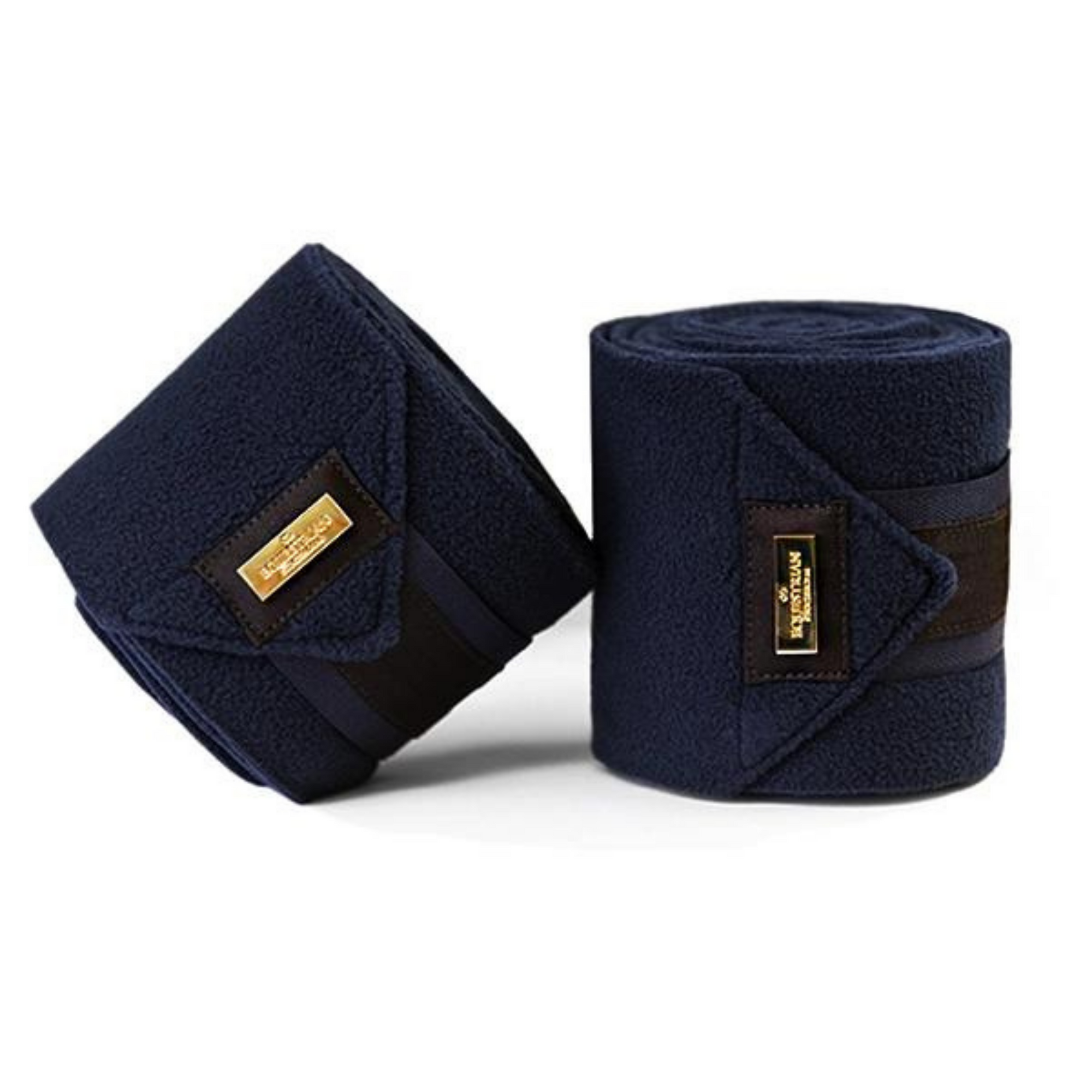 Quality navy fleece bandages with exclusive, shiny details in gold and brown. Style with the saddle pad from our Royal Classic collection to complete the look.