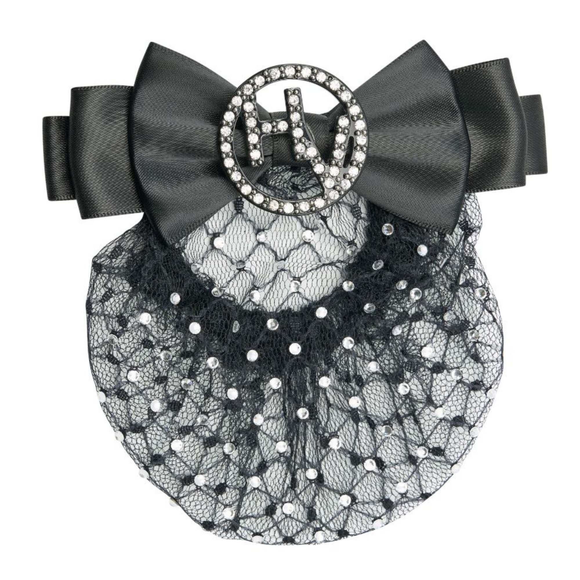 Embellished with small rhinestones on net and a glamorous HV brooch in the center