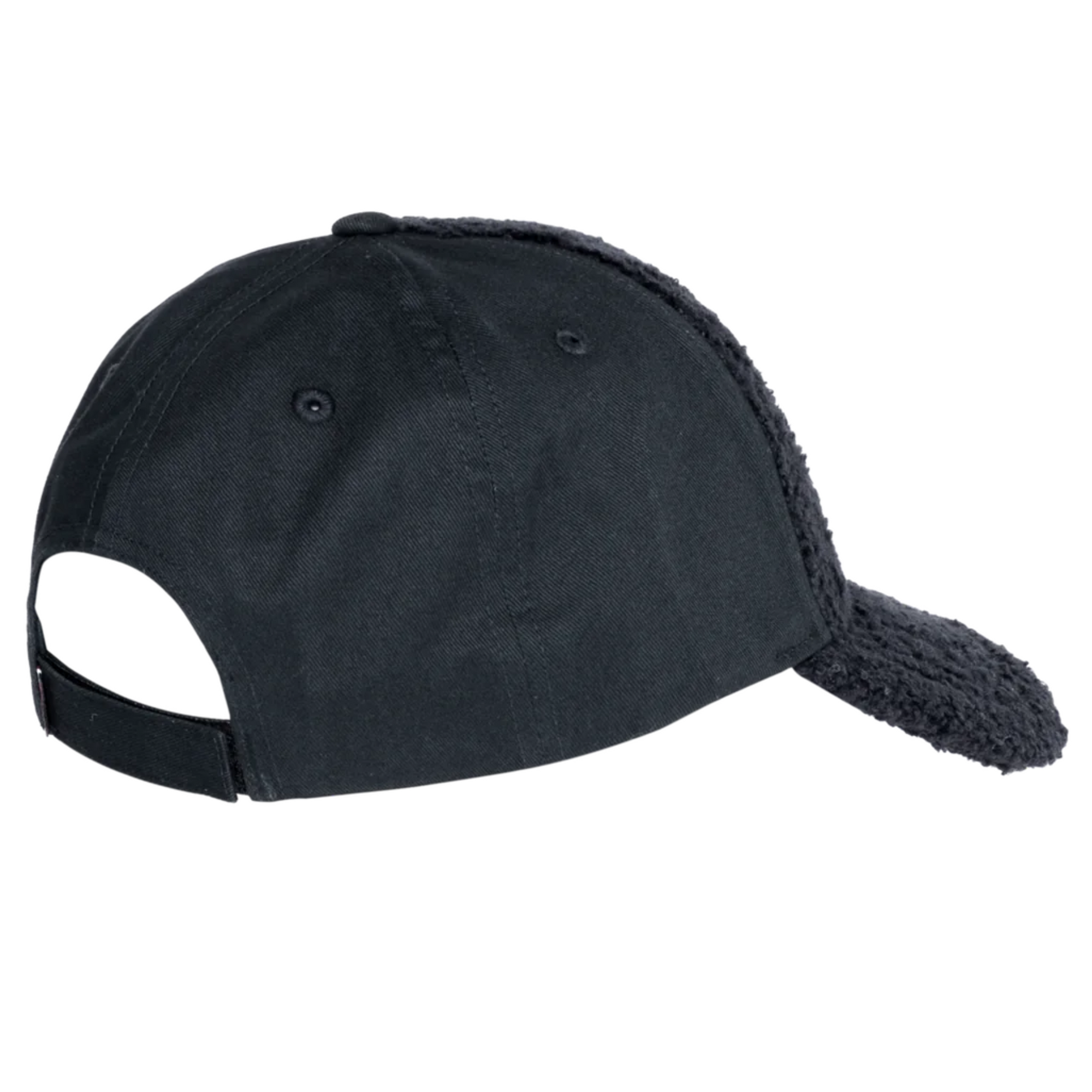 Designed from breathable cotton twill and faux shearling, it features a embroidered patch on the front.