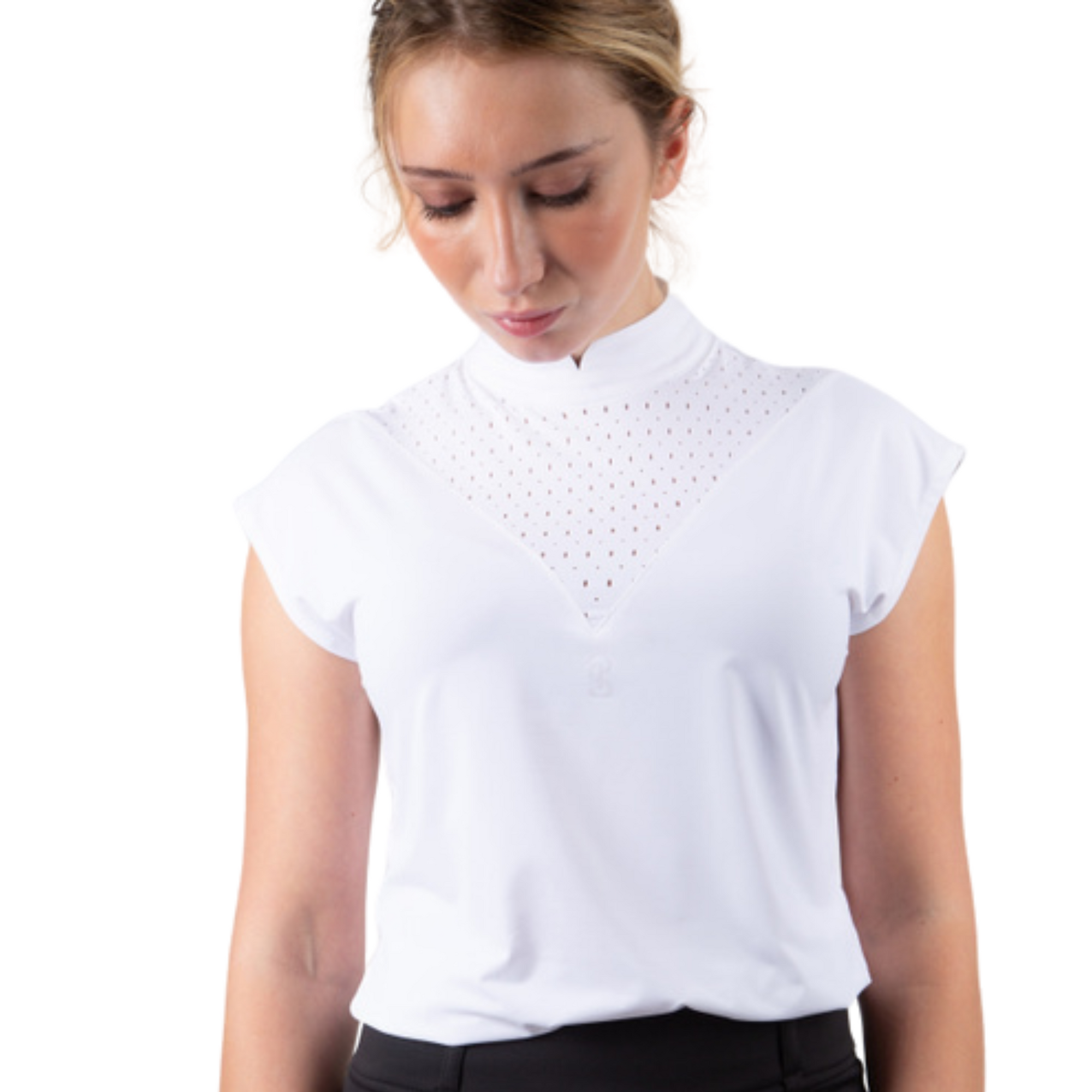 Show top in quick-drying, stretchy fabric with high breathability – ideal for warm climates. The material helps regulate body temperature by wicking away sweat, keeping the rider cool and comfortable.