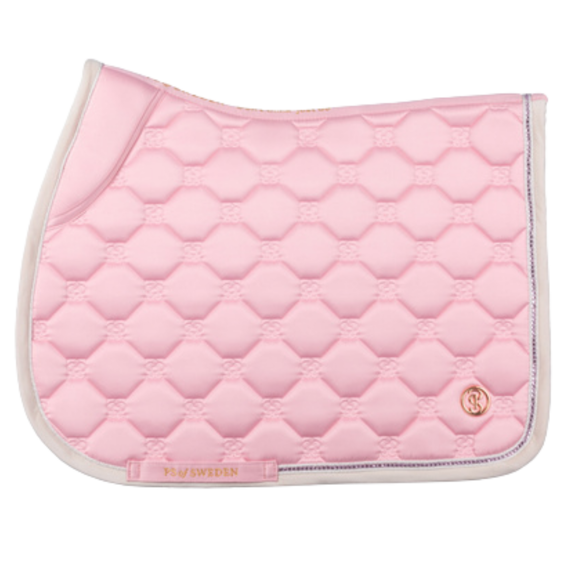 Anatomically designed saddle pad in shiny satin fabric with velvet binding in contrast color, featuring brand new square-shaped quilt with double monogram.