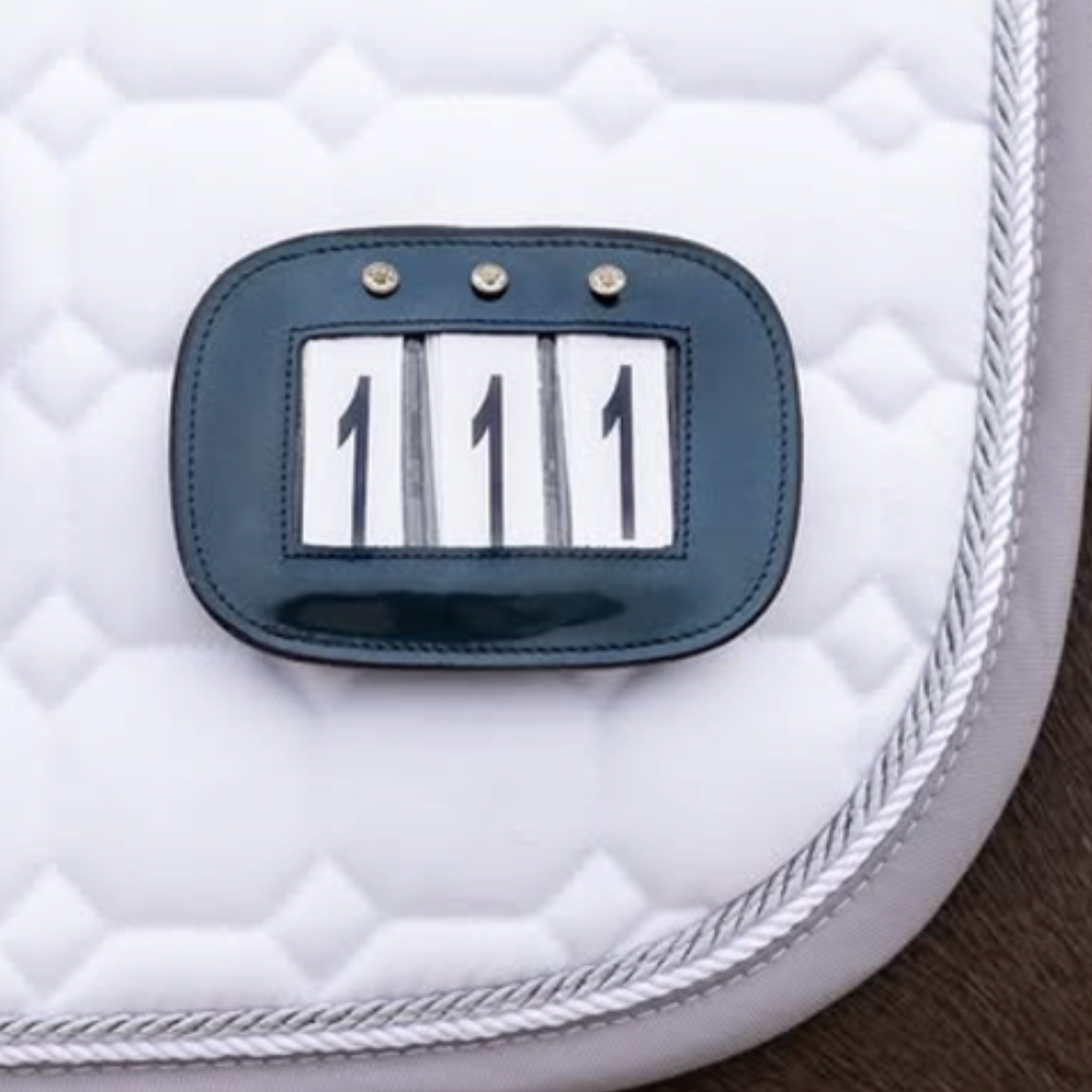 Supplied with numbers and easy to attach to the bridle with a velcro closure or saddle pad with a safety pin.