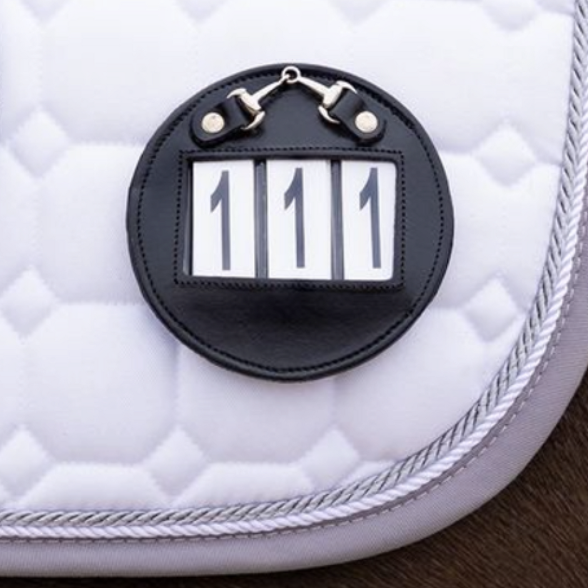 Supplied with numbers and easy to attach to the bridle with a velcro closure or saddle pad with a safety pin.