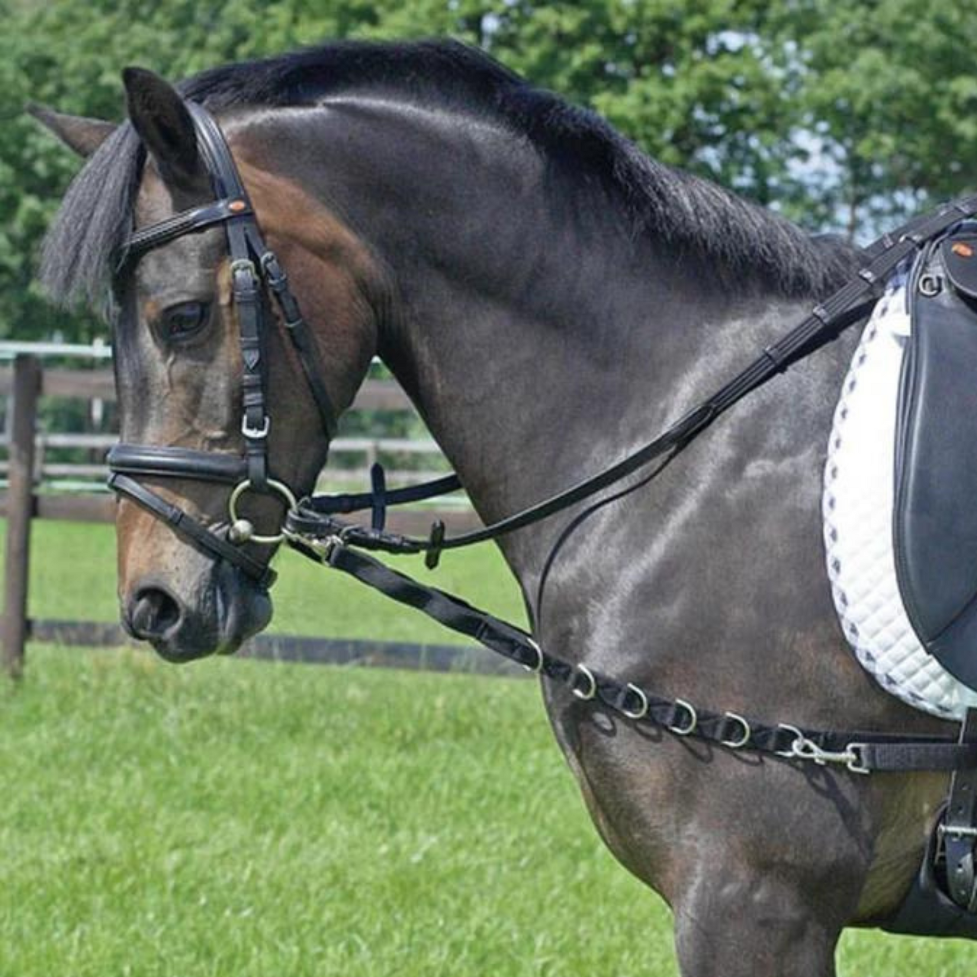 Equipped with 6 D-rings to adjust the side rein in length
