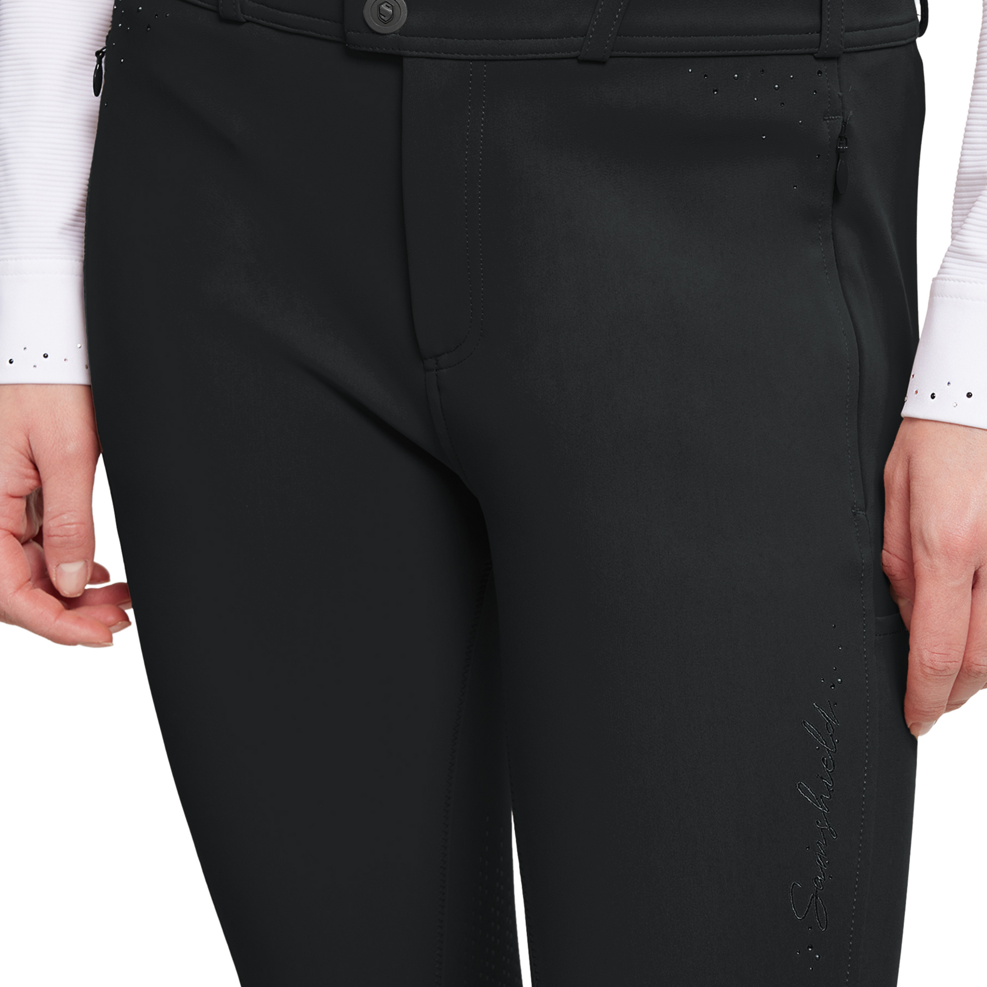 Protect against ultraviolet rays thanks to the UV treatment. The breeches are decorated with a Samshield blazon made with Swarovski® crystals and Swarovski® crystal elements, combining femininity, technology and refinement.