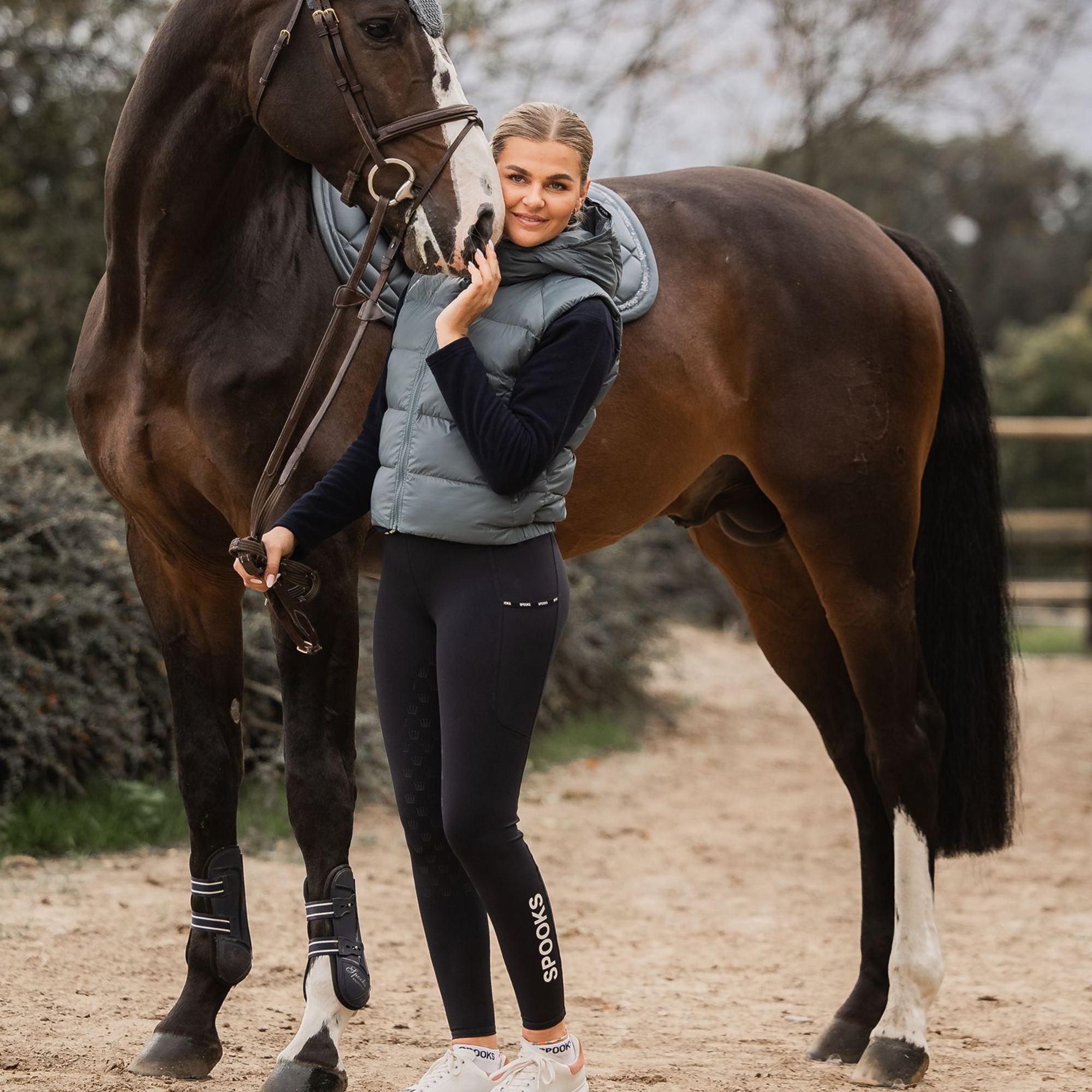 The striking printed SPOOKS lettering on the left leg makes the sporty look of the riding leggings. The design of the leggings is rounded off by the printed logo on the waistband and the SPOOKS border on the mobile phone pockets.